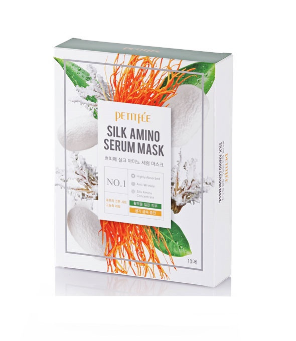 Тканинна маска з протеїнами шовку Petitfee Silk Amino Serum Mask живить, пом'якшує і розгладжує шкіру, покращує її текстуру, збагачує вітамінами, амінокислотами, білками і іншими важливими мікроелементами.